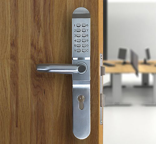 La garniture codée s'installe sur une porte pour limiter les accès aux personnes utilisant la combinaison chiffrée.